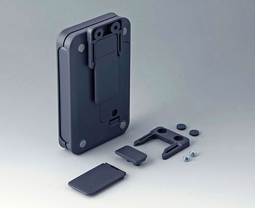 Serves as a clip and / or wall suspension. Assembly oriented towards the length or width (size S towards the length only). For a battery exchange, the clip can easily be removed. Two mounting holes diameter 4.2 mm necessary.