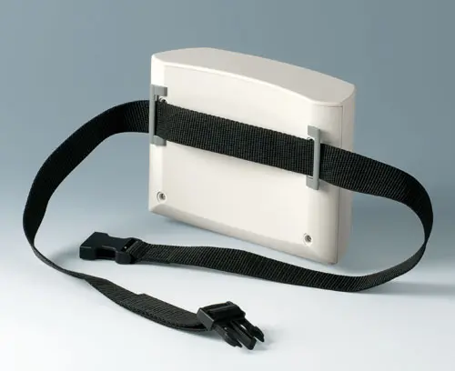 ERGO-CASE L, flat Ergonomically shaped enclosure to wear on the body. Recessed operating area in order to protect the membrane keyboards. Plane area for individual interfaces at the end side. Battery compartment lid snapped-on (battery compartment as accessory).