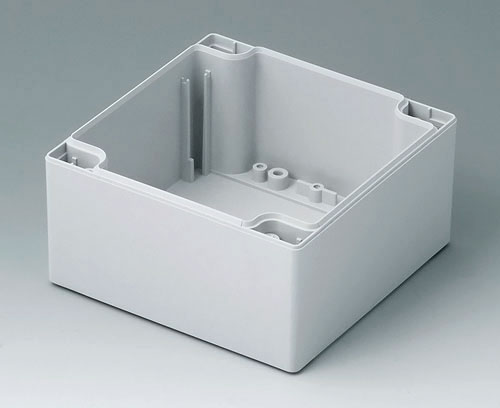 ROBUST-BOX WIDTH 120, Vers. I Robust plastic enclosure, ideal for electrical and electronic applications. Case shells either usable as top or base part. Each case part contains threads and fixing towers. Screw fixing outside of the sealing area. Recess of approx. 0.8 mm for use of membrane keyboards.