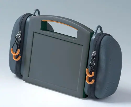 CARRYTEC M Besonders robustes Kunststoffgehäuse mit Griff für den Outdoorbereich. Vertieft liegende Fläche für Folientastaturen. Plane, stoßgeschützte Flächen am Gehäuseunterteil für den Einbau der Schnittstellen, Steckverbinder, Peripheriegeräte etc. Rückseitige Schnittstellenmontage, z.B. Tragarmanwendung, ermöglicht saubere Kabelführung über Gehäuseanbindung. Befestigungsdome für Platinen und Bauteile im Ober- und Unterteil. Sockel für einfache Daten- und Ladestromübertragung sowie Batteriefach 5 x AA (Bearbeitung auf Anfrage) als Zubehör.