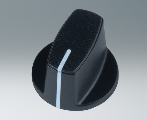 Passend für Rund- und Flügelknopf 16 / COM-KNOB 16. Mutterabdeckung einfach zum Aufstecken. Strich ist schwarz.