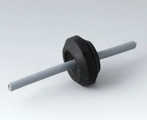 Montagefreundliche einfache Kabeldurchführung mit leicht durchstoßbarer Membran. Auch als Verschluss-Stopfen verwendbar. Halogen- und schwefelfrei. Geeignet für Wandstärken von 0,5 - 3 mm und für Kabeldurchmesser von 5 - 10 mm. Einsatztemperaturen von -40°C bis +80°C. Aufnahmebohrung ø 16,5 mm.