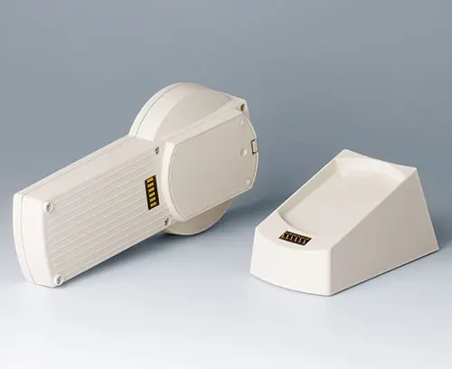 Unterteil S flach, Ausf. I Baugruppe: Einzigartige Kombinationsvielfalt für Mobil-/ Pult- und Wandanwendungen geeignet. Schraubdome für Platinen vorhanden. Abschluss erforderlich – je nach Anwendung Batteriefach und -deckel / Bodenplatte mit Griffmulde / Bodenplatte mit Rastleisten, Sockel (Pult), Sockel (Ladestation) oder Sockel (Wand/Pult) – siehe sep. Artikel.