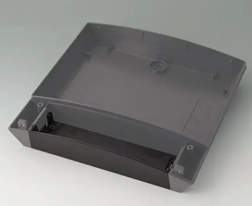 NET-BOX 220, Ausf. I Dreiteiliges Kunststoffgehäuse im einheitlichen Erscheinungsbild durch abgedeckte Gehäuseverschraubungen. Moderne Farbkombination lichtgrau und lava. 2 Platinenebenen mit je 4 Befestigungsdomen im Elektronikraum. Durch das hochwertige Material ASA+PC-FR auch im Außenbereich einsetzbar.
