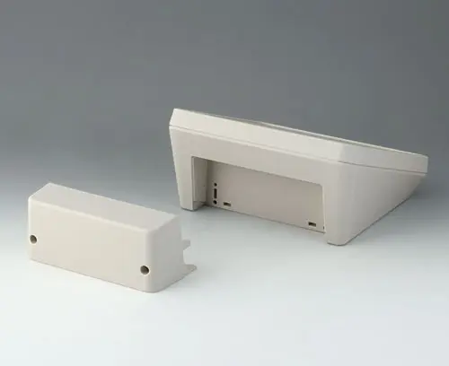 3-teiliges Kunststoffgehäuse in modernem Design mit einer ergonomisch geneigten Bedienfläche. Der im Lieferumfang enthaltene Deckel ermöglicht zusätzliches Einbauvolumen in einem separaten Bereich. Befestigungsdome für Platinen und Bauteile im Ober- und Unterteil. Wandhalter und Dichtung (zur Erhöhung der Schutzart bis IP 65) im Zubehörprogramm. Unsichtbare Verschraubung mit Edelstahlschrauben und Torx-Antrieb. Durch das hochwertige Material  und die robuste Konstruktion auch im Außenbereich einsetzbar.