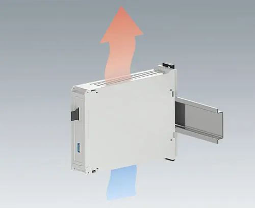 DIN-Schienengehäuse mit 2 steckbaren Seitenpanels mit Lüftungsschlitzen für erhöhte Wärmeabfuhr und Frontpanel. Passend für DIN-Schienen EN 60715 TH35. Besonders einfache und flexible Bestückung sowie rationelle, schraubenlose Gehäusemontage.