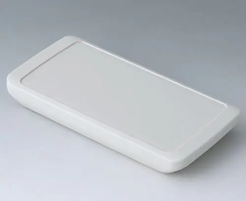 2-teiliges Handgehäuse in flachem Design mit großer Bedienfläche bis zu 4" (10 cm). Seitlich gerundete Gehäusekonturen - liegt angenehm in der Hand und ist sicher zu bedienen. Vertieftes Bedienfeld für Anwendungen mit Dekorfolie. Schraubdome für Platinen in Ober- und Unterteil. Dichtung für IP 65 als Zubehör.