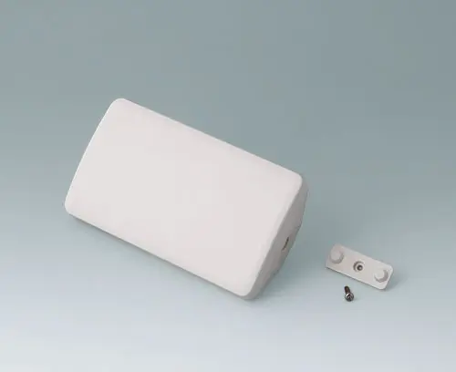 2-teiliges Kunststoffgehäuse mit konvex, gewölbtem Oberteil. Die dreieckige Grundform ermöglicht eine Verwendung in Ecken oder einen ergonomischen Aufstellwinkel von 45°. Robuste Konstruktion mit bewährter Nut- und Federverbindung. Verschraubung mit Edelstahlschrauben und Torx-Antrieb. Schutzart IP 40 ohne Dichtung. Befestigungsdome für Platinen und Bauteile in Ober- und Unterteil.