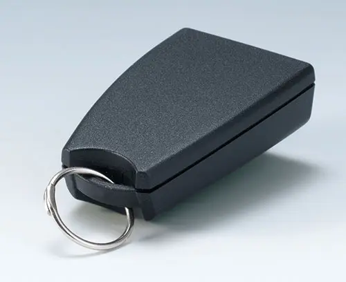 SMART-CASE XS Zweiteiliges Mini-Gehäuse mit Öse zur Befestigung am Schlüsselanhänger. Befestigungsmöglichkeit für die Platine im Gehäuseunterteil. Montage von Ober- und Unterteil durch Verschraubung. Volumen für 12 V-Rundzelle oder Knopfzelle.