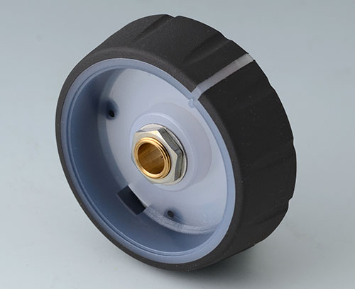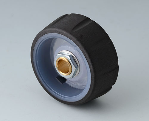 STAR-KNOBS 41 Suitable for rotary potentiometer or rotary pulse generators with round shaft ends according to DIN 41591. Collet system for convenient knob assembly from the front. Borehole without chamfer. Can be illuminated: recommended for the flush-fitting version, please order LED illumination separately.
