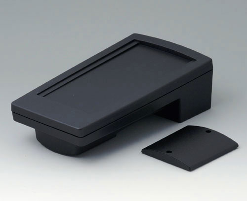 DATEC-MOBIL-BOX M, Vers. I, high Universally applicable hand-held box of medium size. Large area for cutouts and openings. Recessed control area for keyboards. Lid of battery compartment in the base (battery compartment as accessory). Sealing for IP 65 as accessory.