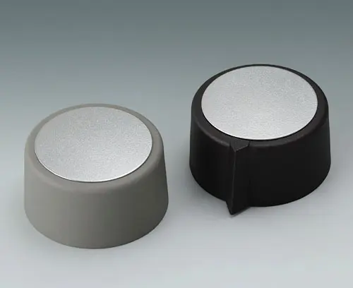 COM-KNOBS 31, with recess Suitable for rotary potentiometer with round shaft ends according to DIN 41591. Collet system for convenient knob assembly from the front. Borehole without chamfer.