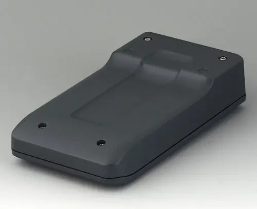 2-part compact hand-held enclosure with sealing and with an ergonomic, robust design. Secure grip through finger recess in the bottom part. Recessed user area to protect the operating elements. Attachment domes for PCBs and components in the top and bottom parts.