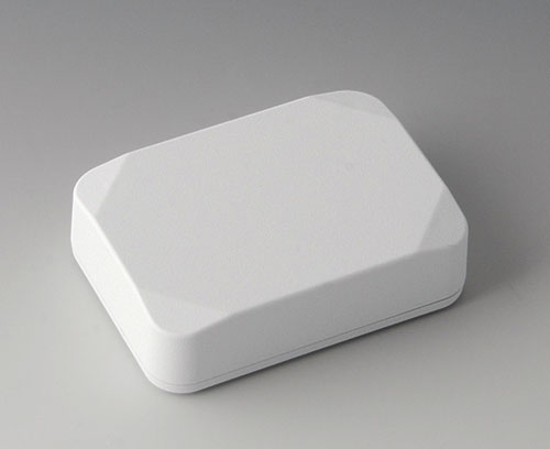 MINI-DATA-BOX E50, flat 2-part plastic enclosure with flat top part, for universal use. Robust design with proven tongue and groove connection. Assembled with Torx stainless steel screws. Fixing supports for PCBs and components in the top and bottom parts. Fastening on the supports is by means of hot caulking.