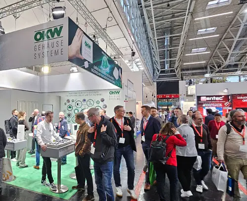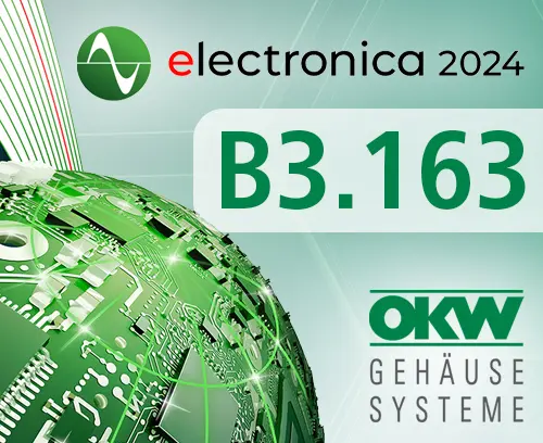 The electronica has been covering the entire spectrum of electronics for years. This year, from 12 to 15 November, around 80,000 visitors once again gathered in 18 exhibition halls to obtain a wide range of information on various areas of interest from 3,480 exhibitors. This time, the main focus was on sustainability and artificial intelligence. Naturally, OKW Gehäusesysteme GmbH from Buchen, with their "electronic enclosures," was among the exhibiting companies.