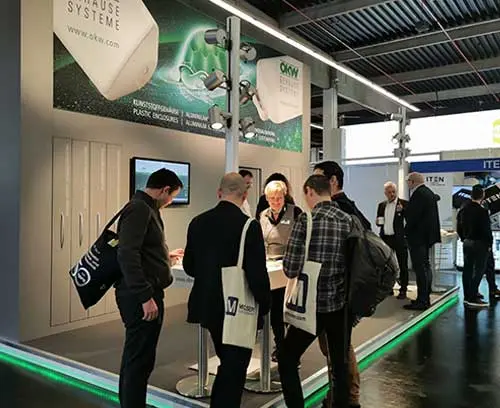 Last week (25.02 to 27.02.2020), OKW Gehäusesysteme showed its products at the embedded world trade fair in Nuremberg. As the name suggests, the event focuses on all technologies related to embedded systems: the security of electronic systems, distributed intelligence, the Internet of Things, e-mobility and energy efficiency. The high-quality plastic and aluminium enclosures by OKW are ideally suited to these fields of application and attracted lively interest from the visitors to the trade fair. 200 companies had cancelled their participation at short notice due to the spread of the corona virus, and so the number of visitors, at 13,800, was significantly lower than in previous years. However, OKW was able to confirm the encouraging results from previous years.