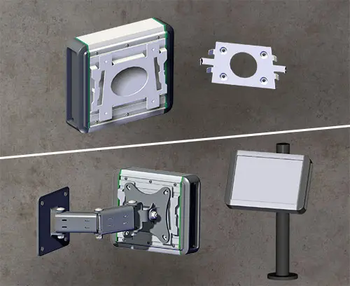 If required, SMART-TERMINAL enclosures can also be mounted directly on commercially available swivel arms and wall suspension systems with 100x100 mounting holes using the VESA adapter.