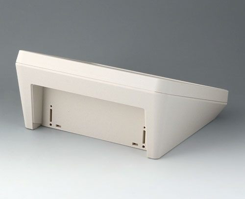 Modern two piece plastic enclosure with an ergonomically inclined operating panel. Fastening pillars for PCBs and components in the top and bottom parts. Recessed interface area. Wall suspension element and sealing (to raise the protection class up to IP 65) included in the range of accessories. Hidden stainless steel assembly screws with secure Torx heads. Can also be used outdoors thanks to the high-quality material and the robust design.