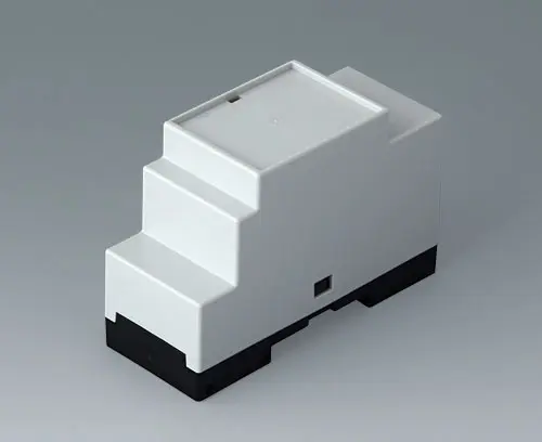 Enclosure for applications where larger components/assemblies need to be fitted inside. Different connection levels flat or high for individual configuration. Case corresponds to DIN 43880, size 1. Simple and quick assembly by locking onto DIN-rails EN 60715 TH35. Base part with fixing pillars for the PCB. Vertical and horizontal guides for additional PCBs.