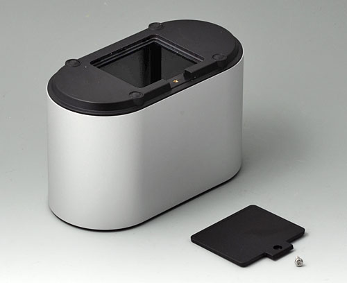 4-part enclosure for many different applications. Sturdy frame made of aluminium, glass bead-blasted and anodised. Plastic parts made of ASA+PC-FR with high UV protection and high flame resistance. Attachment domes for PCBs and components in the top and bottom parts. Top part with recessed surface to protect the membrane keyboard. Bottom part with opening and screw-down cover: practical for the use of a battery compartment or for access to the interior, e.g. for a memory card or batteries that are mounted directly on the PCB. Battery compartment kit 3 x AA with contact springs, battery clips, button cell holder and wall mounting option as accessories.