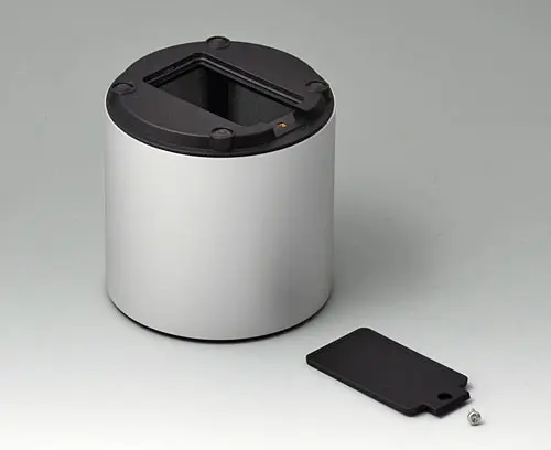 4-part enclosure for many different applications. Sturdy frame made of aluminium, glass bead-blasted and anodised. Plastic parts made of ASA+PC-FR with high UV protection and high flame resistance. Attachment domes for PCBs and components in the top and bottom parts. Top part with recessed surface to protect the membrane keyboard. Bottom part with opening and screw-down cover: practical for the use of a battery compartment or for access to the interior, e.g. for a memory card or batteries that are mounted directly on the PCB. Battery compartment kit 2 x AA with contact springs, battery clips, button cell holder and wall mounting option as accessories.