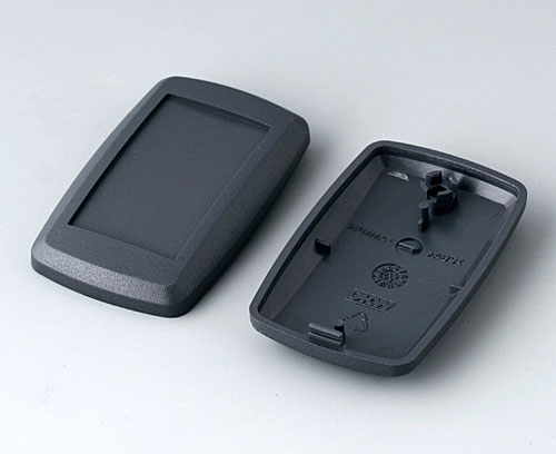 Bottom and top part EM Assembly unit: Modern, flat styling. Easy to carry. Recessed operating area for membrane keyboards. Fixing supports for PCBs/components in the case bottom. Intermediate ring EM as separate article necessary.