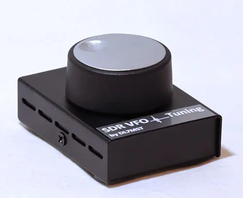 The USB SDR VFO Tuning Knob* makes it easy to adjust the frequency in SDR software programs using the tuning knob. After the USB SDR VFO tuning knob has been connected to a PC, the LED lights up in blue and changes its intensity when it is turned. The tuning knob has a finger recess for comfortable and precise adjustment.