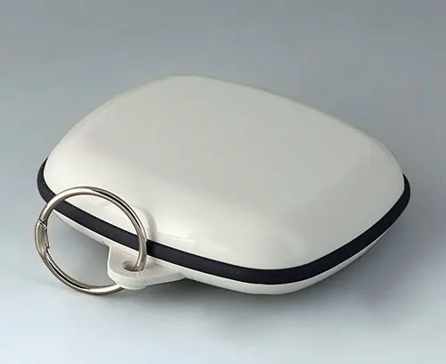 Modern small enclosure specifically designed for "wearable technologies". Three-part design consisting of highly polished top and bottom parts and a matt TPV sealing ring.