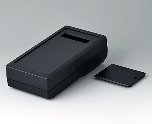 DATEC-MOBIL-BOX M, Vers. II Universally applicable hand-held box of medium size. Large area for cutouts and openings. Recessed control area for keyboards. Lid of battery compartment in the base (battery compartment as accessory). Sealing for IP 65 as accessory.