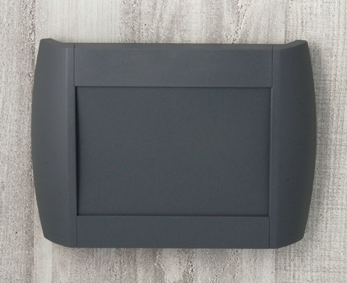UNITEC S, 0.6/0.6 Plastic enclosure with two operating panels rectangular to each other, optionally for single or dual use. Front part recessed 0.6 mm. Top part recessed 0.6 mm. All-round graphic overlays may also be used! Fastening pillars for mounting of PCBs in top, base and front part.