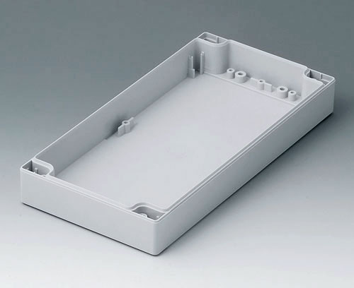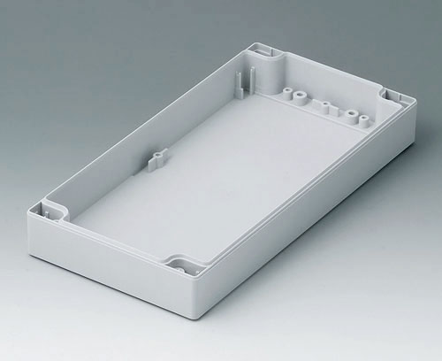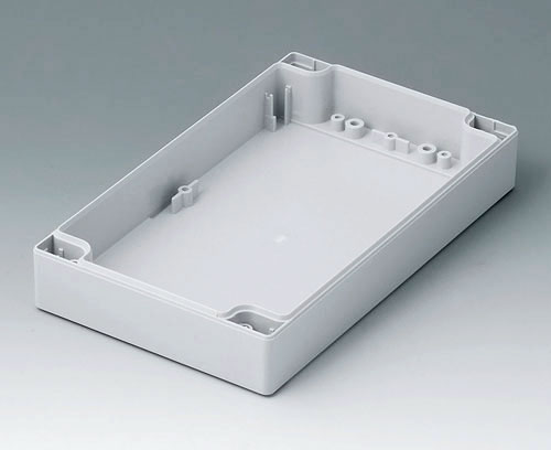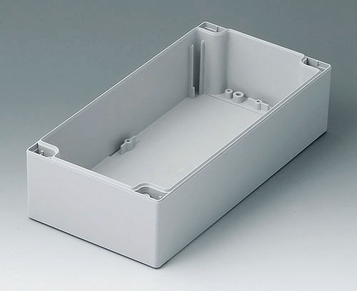 ROBUST-BOX WIDTH 120, Vers, II Robust plastic enclosure, ideal for electrical and electronic applications. Case shells either usable as top or base part. Each case part contains threads and fixing towers. Screw fixing outside of the sealing area. Recess of approx. 0.8 mm for use of membrane keyboards.