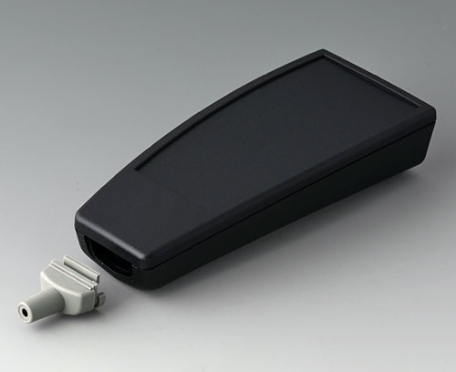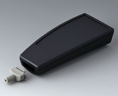 SMART-CASE L, Vers. IV Three-part handheld case with cable bush. Bush simply to plug-in, suitable for round cables. With recessed operating area for membrane keyboards. PCBs can be fixed in the top and base part.