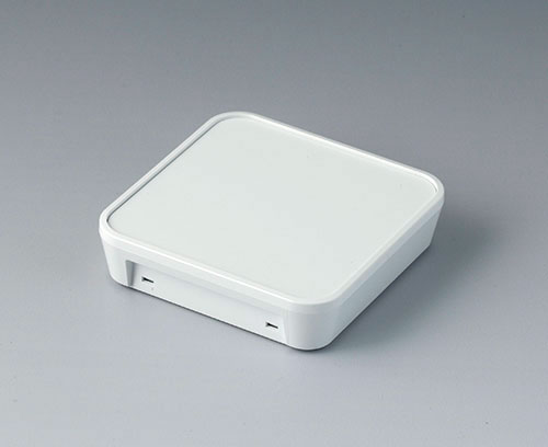 Elegant two-part plastic enclosure with flat top part. Fastening pillars for PCBs and components in the top part. Bottom part with a series of pre-moulded cut-outs for assembly on standard flush-mounted/cavity wall boxes (machining required). Secure snap-in assembly of top and bottom parts. Rational assembly of the electronics. To open the enclosures easily and practically, we recommend that you use the opening tool set, which is available as an accessory. Recessed operating area protects a membrane keyboard or glass control panel. Resin hardboard protection plate, glass panel, adhesive foil and opening tool available as accessories. Due to the high-quality material (UL 94 V-0) and the elegant design, perfect for use in modern building services technology.