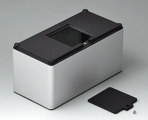 4-part enclosure for many different applications. Sturdy frame made of aluminium, glass bead-blasted and anodised. Plastic parts made of ASA+PC-FR with high UV protection and high flame resistance. Attachment domes for PCBs and components in the top and bottom parts. Top part with recessed surface to protect the membrane keyboard. Bottom part with opening and screw-down cover: practical for the use of a battery compartment or for access to the interior, e.g. for a memory card or batteries that are mounted directly on the PCB. Battery compartment kit 4 x AA with contact springs, battery clips, button cell holder and wall mounting option as accessories.