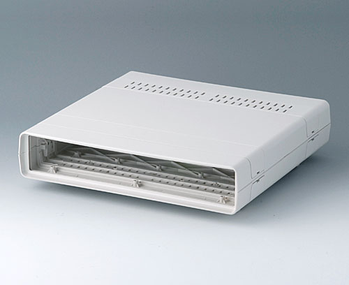 SMART-BOX WIDTH 130 Four-part plastic enclosure, ideal for design orientated electrical and electronic applications. The sealing is already prefitted in the top. Screw fixing outside of the sealing area. Resessed operating area to protect the membrane keyboard. Fastening pillars for PCBs and DIN-rails.