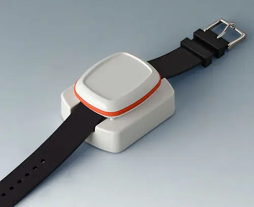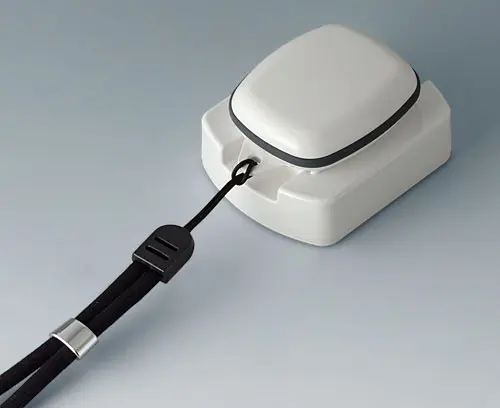 Socle de fixation pour circuit imprimé dans la partie supérieure ; après assemblage du boitier, le circuit imprimé tient tout seul entre les parties supérieure et inférieure. Alimentation interne par pile ronde ou pile bouton sur le circuit imprimé ou, en alternative, utilisation d’une pile rechargeable avec bobine permettant un chargement par induction de l’appareil.