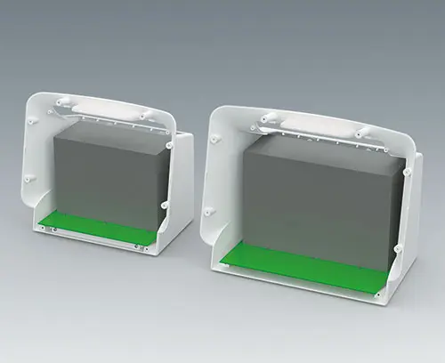 Boitier doté d’une grande capacité interne pour l’intégration de composants volumineux. Ses larges surfaces latérales facilitent l’usinage de connecteurs, de fentes d’aération pour optimiser la dissipation de la chaleur, etc. À l'arrière, une zone encastrée sécurise la connectique et le câblage, tandis qu'une zone en retrait est dédiée à l’étiquetage. Des plots de fixation sont intégrés pour les PCB ou les platines de montage.