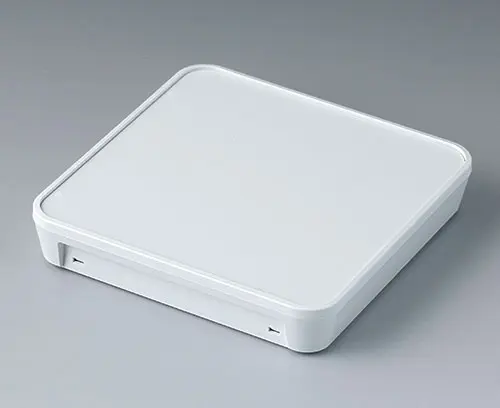 Boitier en matière plastique en deux parties, au design noble, avec partie supérieure plate. Bossages de fixation pour circuits imprimés et modules dans la partie supérieure. Partie inférieure aux contours préformés pour la découpe et la fixation sur des boîtes d'encastrement / boîtes cloison sèche (usinage ultérieur nécessaire). Encliquetage sécurisé de la partie supérieure et inférieure, rationnel lors de l'assemblage final. Pour ouvrir facilement les boitiers, nous recommandons d’utiliser les outils de décliquetage pratiques, disponibles en accessoires. Partie en creux pour la protection de clavier. Grâce au matériau de haute qualité (UL 94 V-0) et aux formes élégantes, il convient parfaitement à une utilisation dans la technologie moderne des bâtiments.