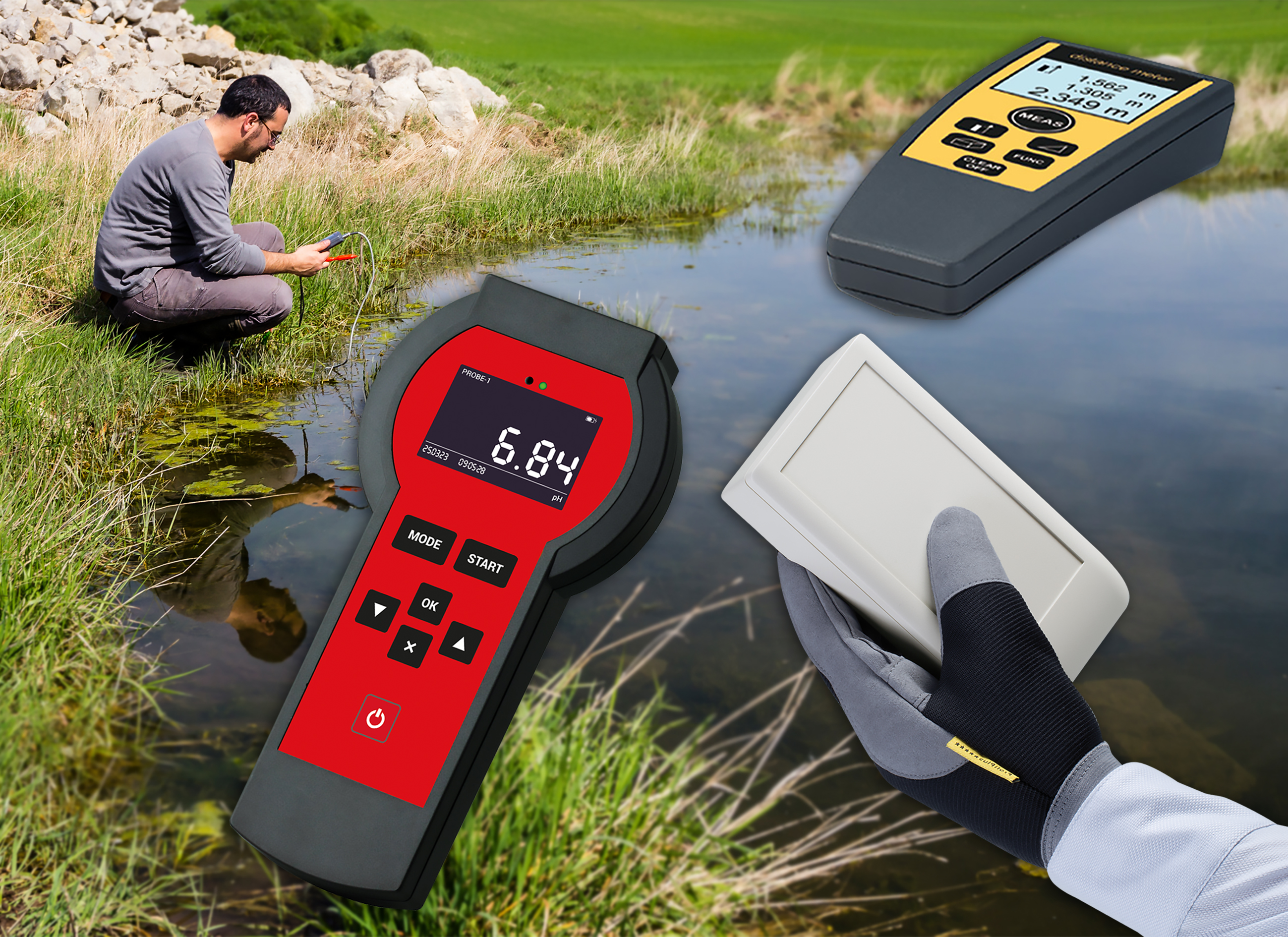 I dispositivi di misura mobili devono essere leggeri e allo stesso tempo compatti. Inoltre è importante che possano essere impiegati e tenuti in modo sicuro e facile anche in condizioni difficili o quando si indossano i guanti. I contenitori in plastica offrono le caratteristiche ideali allo scopo: sono resistenti e grazie all'adattabilità della loro forma permettono design ergonomici che possono essere adeguati in modo ottimale al relativo impiego. I materiali moderni forniscono inoltre un'elevata stabilità con un peso ridotto.