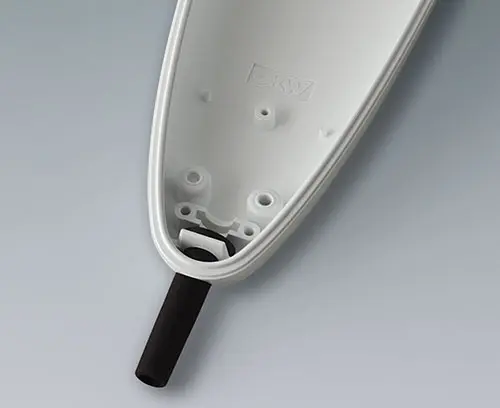 STYLE-CASE L Two-piece hand-held enclosure with an ergonomic, robust design and a pleasant touch sensation. Offers protection up to IP 65 with sealing (accessory). Protection class IP 40 without sealing. Attachment pillars for PCBs and components in the top and bottom parts.