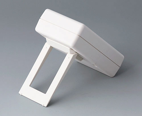 HAND-HELD-BOX M, Vers. I Small hand-held case with excellent design. With recessed area, e.g. for membrane keyboards, control elements. Cut-out section for digital and analogical modules. Battery compartment accessible from the outside with locked battery compartment lid. Raised front area to accommodate plugs.