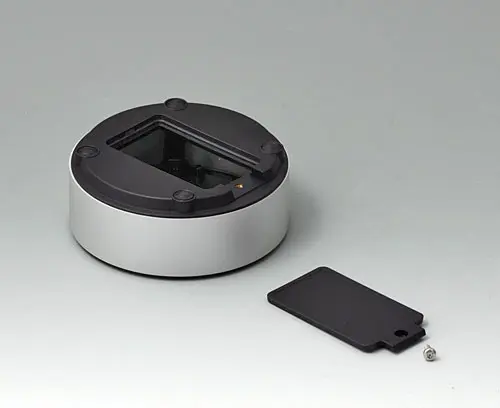 4-part enclosure for many different applications. Sturdy frame made of aluminium, glass bead-blasted and anodised. Plastic parts made of ASA+PC-FR with high UV protection and high flame resistance. Attachment domes for PCBs and components in the top and bottom parts. Top part with recessed surface to protect the membrane keyboard. Bottom part with opening and screw-down cover: practical for the use of a battery compartment or for access to the interior, e.g. for a memory card or batteries that are mounted directly on the PCB. Battery compartment kit 2 x AA with contact springs, battery clips, button cell holder and wall mounting option as accessories.
