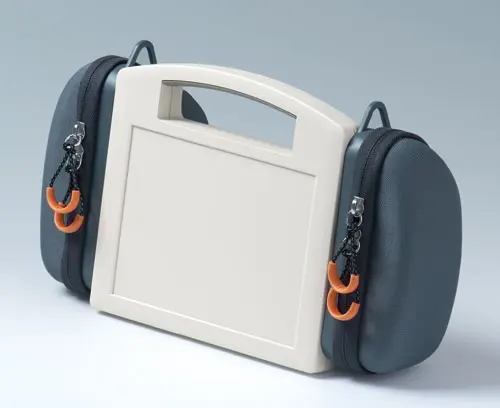 CARRYTEC S Particularly robust plastic enclosure with handle for outdoor use. Recessed surface for membrane keyboards. Flat, impact-protected areas on the bottom part of the enclosure for installing interfaces, plug-in connectors, peripheral equipment etc. Interface installation at the rear, e.g. support arm applications, ensures orderly cable routing through enclosure connection. Attachment domes for PCBs and components in the top and bottom parts. Stations for easy transmission of data and charging current, as well as battery compartment 5 x AA (processing on request) as an accessory.