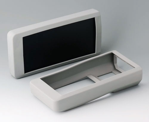 Hand-held box with wide range of applications without battery compartment. Prepared for mounting PCBs of Eurocard size. Large control area for membrane keyboards and controls. Sealing for IP 65 as accessory.