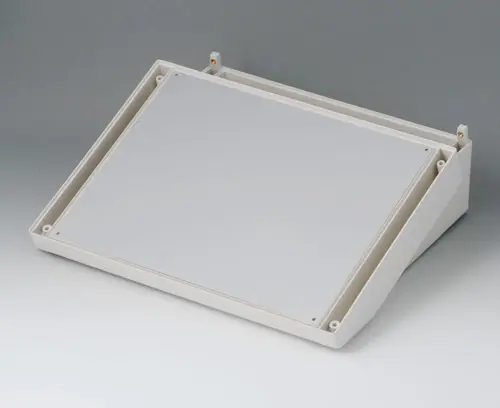 DATEC-TERMINAL L, Vers. III Basic case with terminal compartment. Ergonomically inclined operating area can be used with front panel, profile plate or cover. Suitable to accommodate Eurocards.