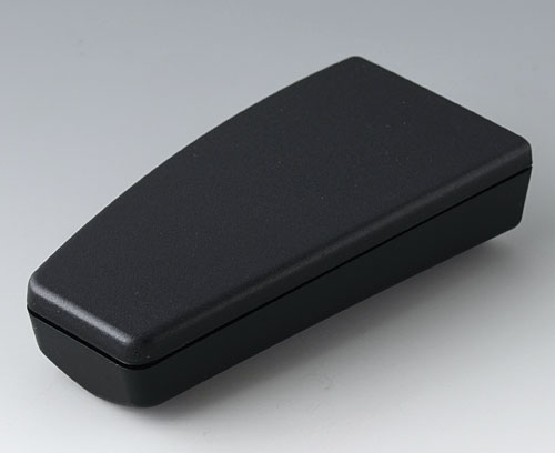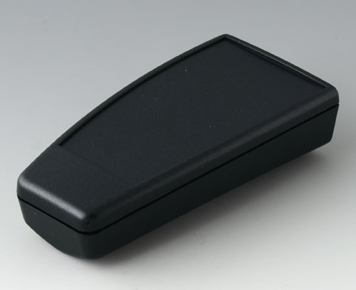 SMART-CASE M, Vers. VI Ergonomic handheld case composed of two parts. Location at the front along with a screw in the center of the case. Possiblities for fixing PCBs in top and base part.
