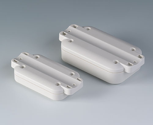 EASYTEC 80 2-part plastic enclosure with flat top part. The bottom part has integrated flanges for quick wall mounting or for installation on pipes/round profiles. Robust design with proven tongue and groove connection. Screw connection with stainless steel screws and Torx drive. Fastening pillars for PCBs and components in the top and bottom parts.
