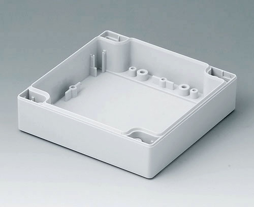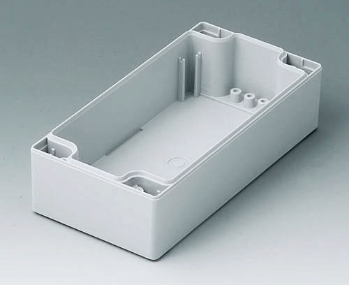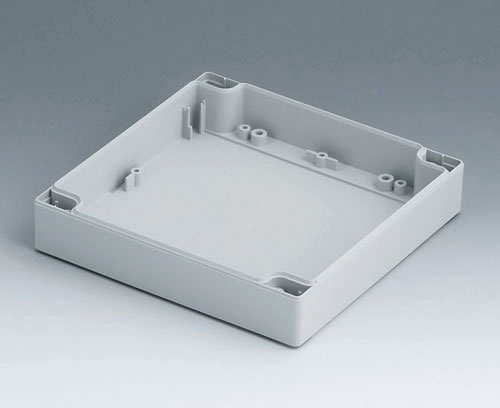 ROBUST-BOX WIDTH 200, Vers. I Robust plastic enclosure, ideal for electrical and electronic applications. Case shells either usable as top or base part. Each case part contains threads and fixing towers. Lid fixing outside of sealed area. Recess of approx. 0.8 mm for use of membrane keyboards.