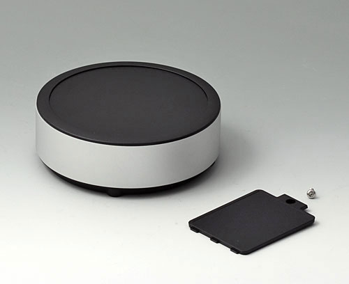 SYNERGY O180 4-part enclosure for many different applications. Sturdy frame made of aluminium, glass bead-blasted and anodised. Plastic parts made of ASA+PC-FR with high UV protection and high flame resistance. Attachment domes for PCBs and components in the top and bottom parts. Top part with recessed surface to protect the membrane keyboard. Bottom part with opening and screw-down cover: practical for the use of a battery compartment or for access to the interior, e.g. for a memory card or batteries that are mounted directly on the PCB. Battery compartment kit 4 x AA with contact springs, battery clips, button cell holder and wall mounting option as accessories.