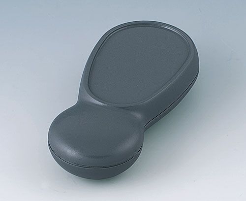 BLOB UNIT A genuine hand held enclosure that can be held and operated with one hand. Two-part enclosure design. Recessed surface for membrane keyboards. Attachment domes for a PCB in the top part.